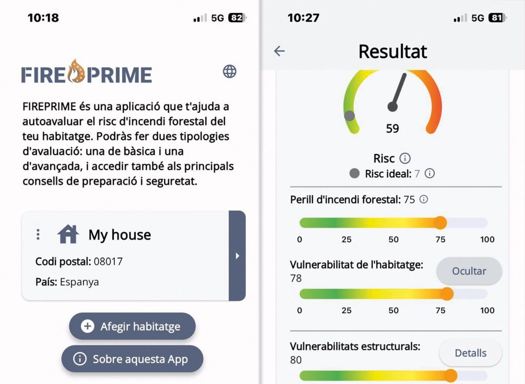 L’app FIREPRIME ofereix als residents de zones forestals una eina senzilla, intuïtiva i rigorosa per conèixer el risc i avaluar la vulnerabilitat de les seves llars davant dels incendis, i així poder prendre decisions informades per millorar-ne la seguretat. Aquesta app, gratuïta, disponible en anglès, castellà, català, alemany i suec, i ja accessible a Google Play i a l’App Store, ha estat desenvolupada pel grup de recerca GESSI de la UPC, incorporant un algoritme d’anàlisi del risc dissenyat per CERTEC-UPC, BOKU (Àustria) i RISE (Suècia). Tots ells, juntament amb la UOC i la Fundació Pau Costa, són membres del projecte FIREPRIME.